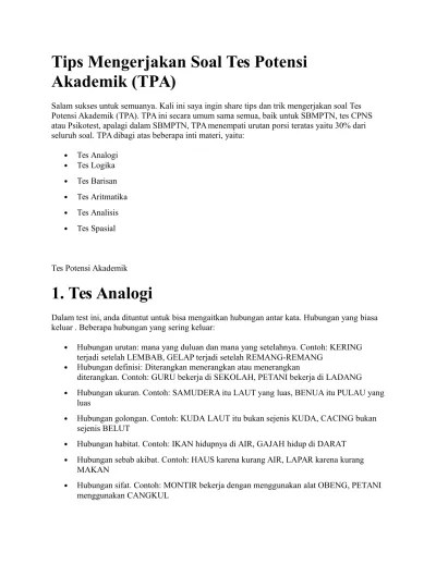 Kalau kalian mau uji coba sebarapa tinggi tingkat logika kalian dan lulus sbmptn, kerjakan contoh . Berikut pemaparan soal tpa dan cara menjawab test tpa. Pada kesempatan ini akan kita paparkan bagaimana tipe soal tps pada tahun 2019. Logika memang tiada duanya quipperian. Definisi tps tps (tes potensi skolastik) merupakan tes untuk .